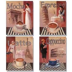Amazon.com: 4 Coffee Posters Kitchen Cafe Decor Paris Art ...