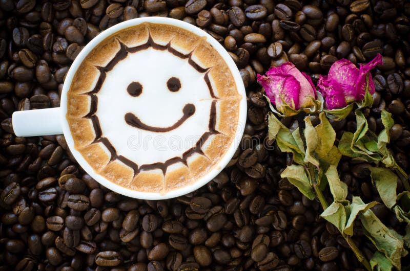 A Cup Of Latte Art And Rose Stock Image - Image of bloom ...
